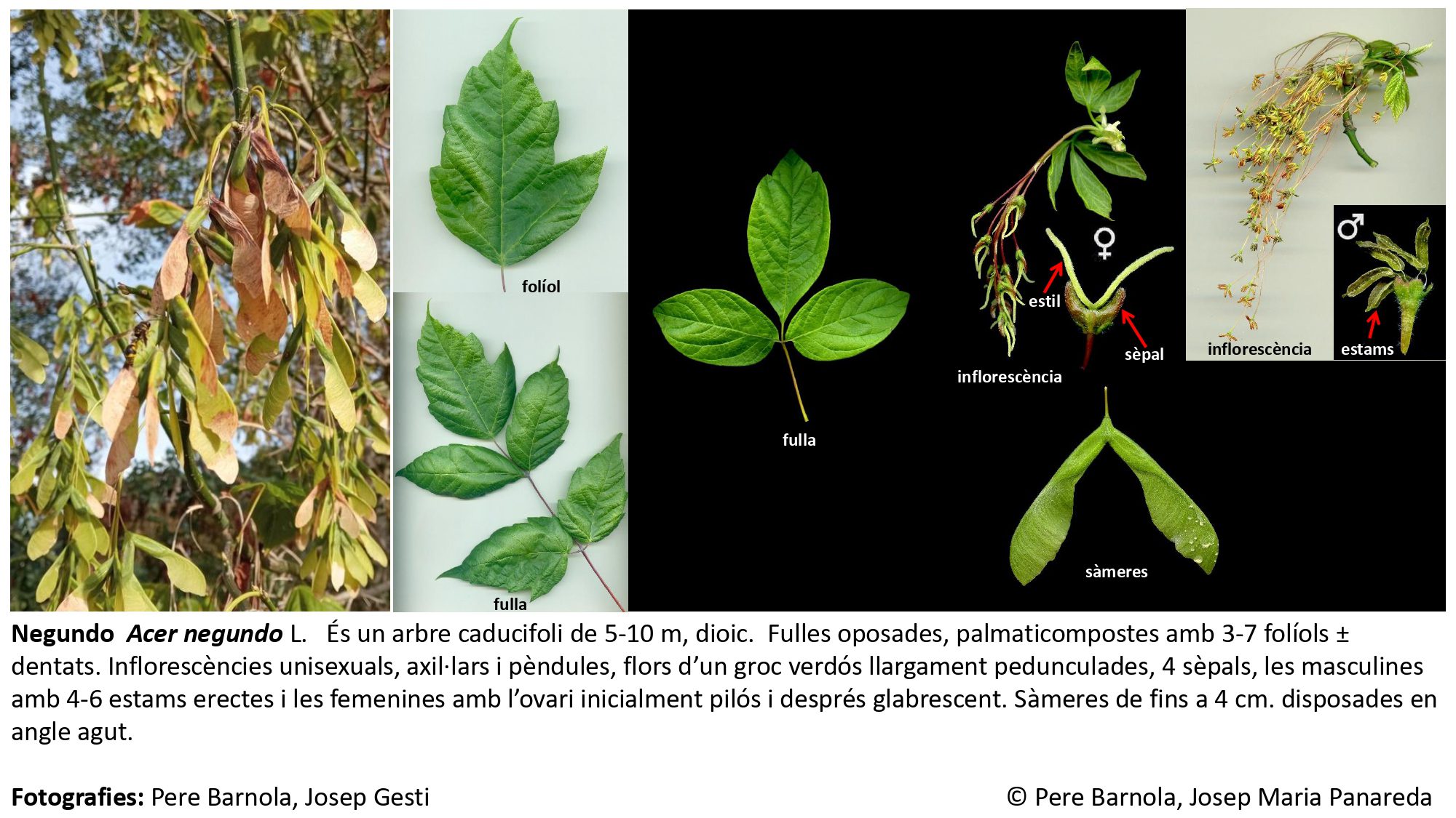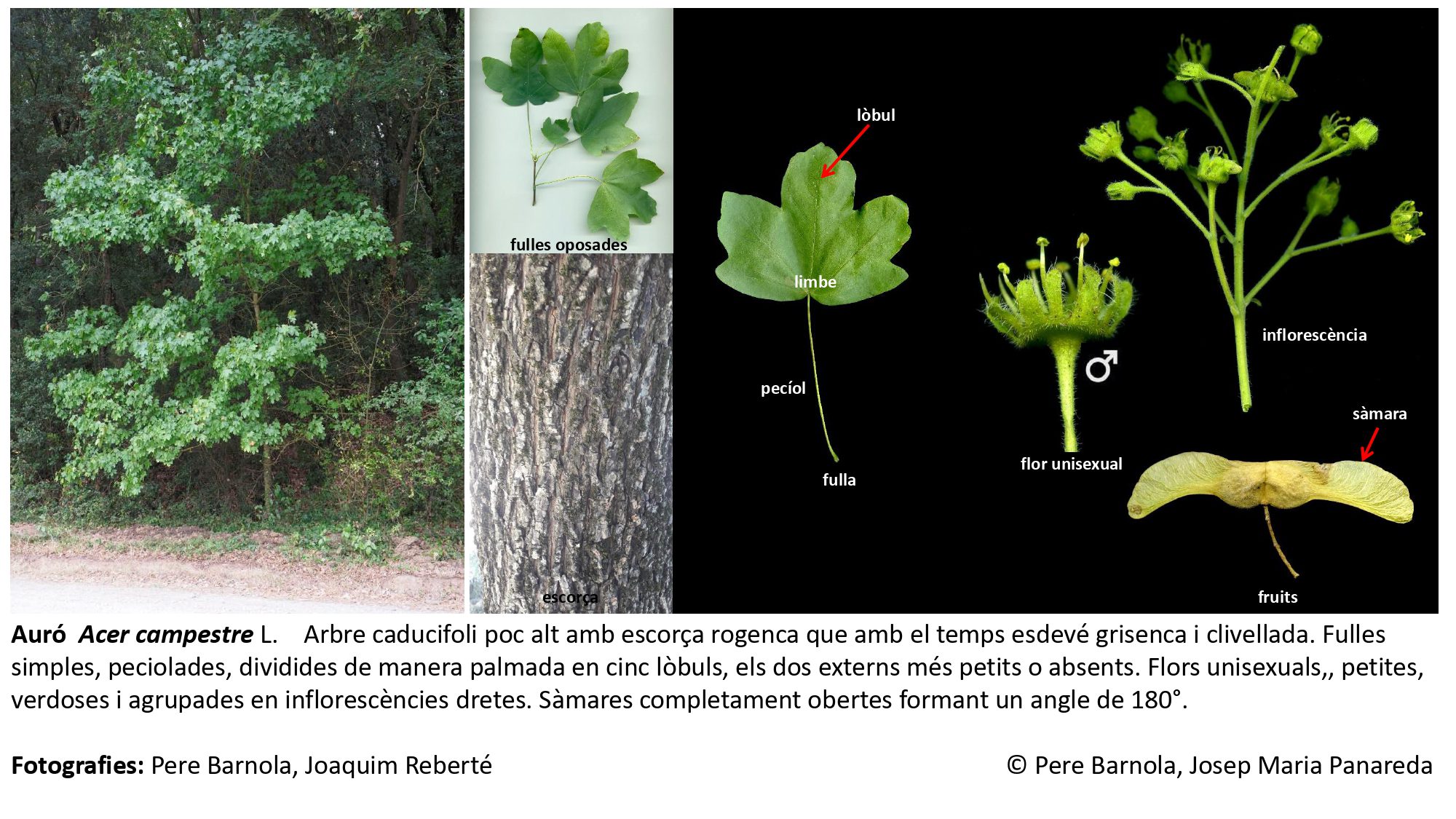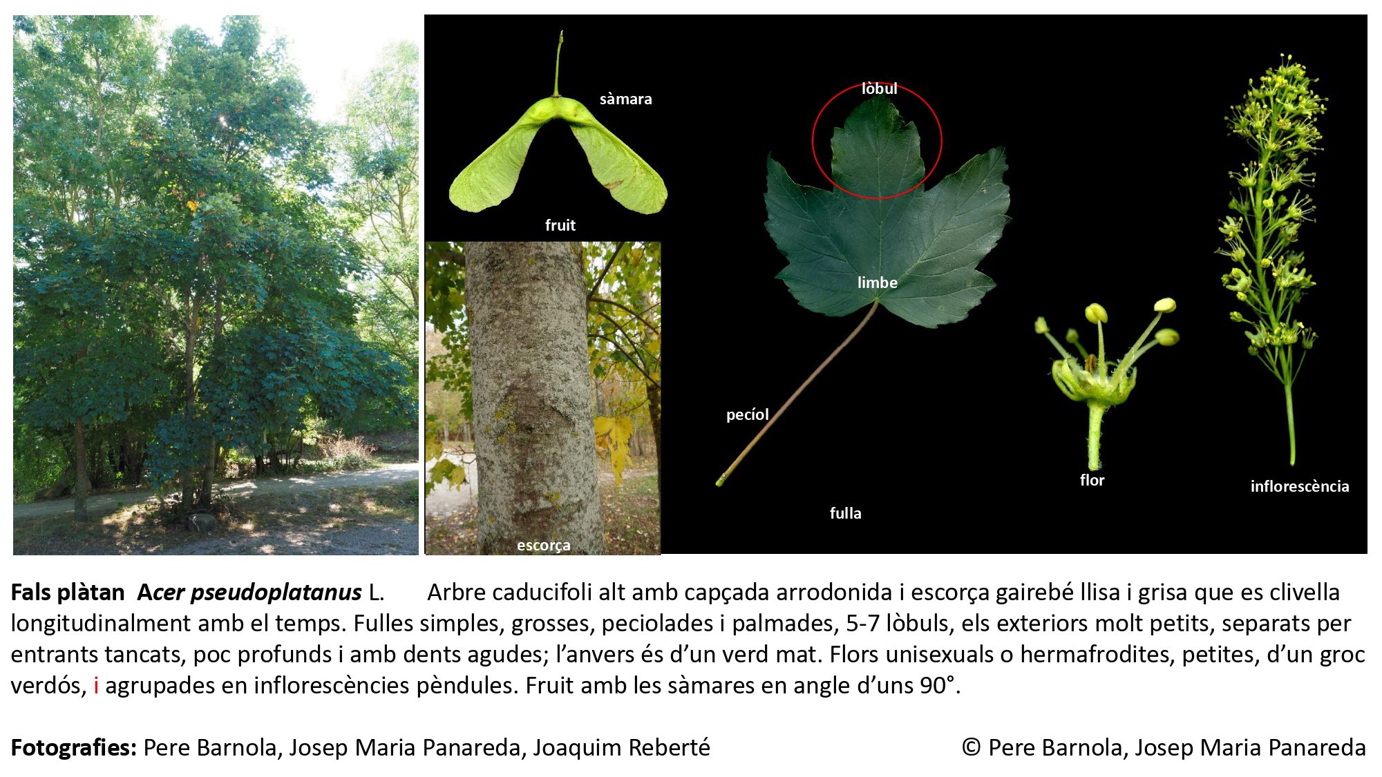 És un arbre caducifoli alt amb capçada arrodonida i escorça gairebé llisa i grisa que es clivella longitudinalment amb el temps. Les fulles són simples, grosses, peciolades i palmades amb 5-7 lòbuls, els exteriors molt petits, separats per entrants tancats, poc profunds i amb dents agudes; l’anvers és d’un verd mat. Les flors són unisexuals o hermafrodites, petites, d’un groc verdós i agrupades en inflorescències pèndules. El fruit és una disàmara amb les sàmares en angle d’uns 90º.